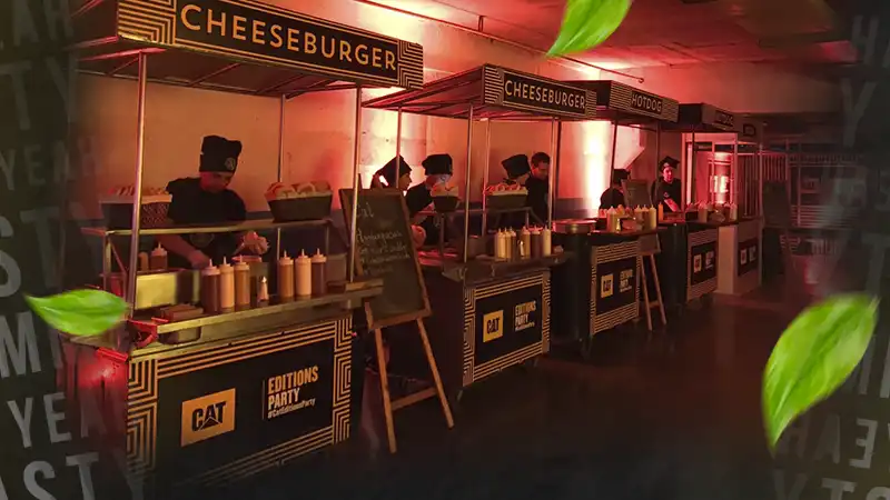 Carritos gourmet en vivo · Burgers · Papas · Experiencias únicas